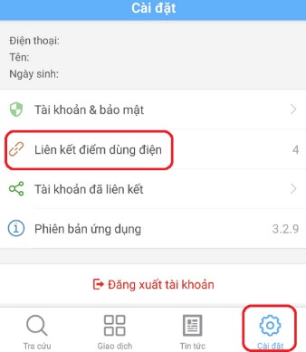 Bước 3: Vào “Cài đặt” ⇒ “Liên kết điểm dùng điện” ⇒ “Thêm liên kết điểm dùng điện”.