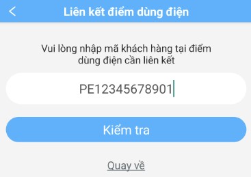 Bước 4: Nhập mã khách hàng bao gồm 11 chữ số sau đó nhấn “Kiểm tra” ⇒ Nếu đúng mã khách hàng thì chọn “Liên kết điểm dùng điện này”