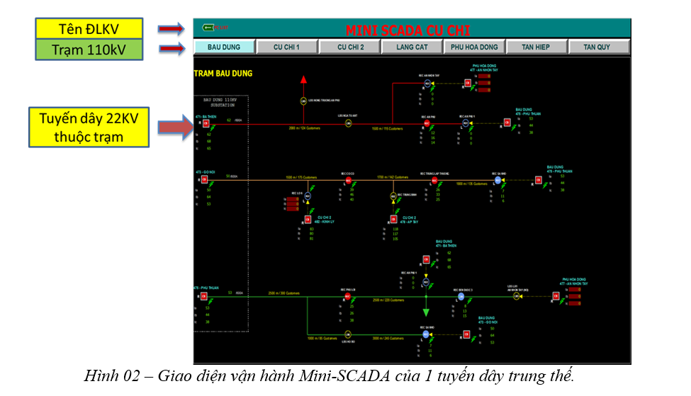 Định nghĩa Mini-SCADA: là sự kết hợp giữa hệ thống SCADA và hệ thống sơ đồ vận hành theo từng tuyến dây (Trạm –> Phát tuyến –> Thiết bị), nhằm giúp người ĐHV xử lý sự cố, thao tác cô lập chuyển tải trong thời gian < 15>