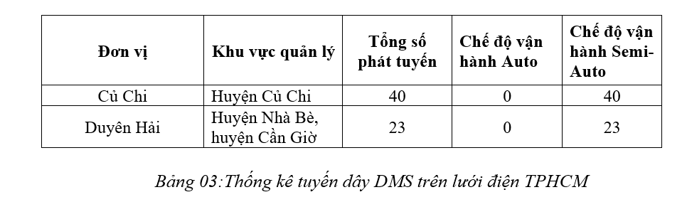 Các chức năng được triển khai của DMS cho CTĐL là BLA, DPF, FL, FLISR, AFR. Đối với các chức năng LVM, PLOS, SCC ... EVNHCMC có kế hoạc triển khai trong giai đoạn 2021- 2023.