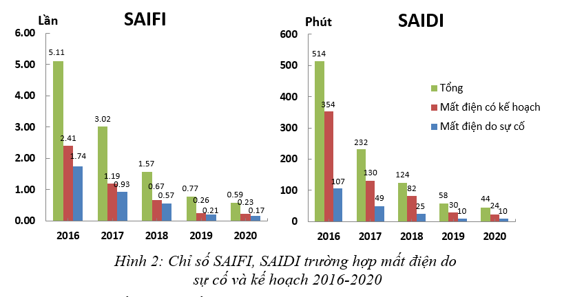 Theo kết quả ghi nhận giai đoạn 2016 – 2020, chỉ số SAIFI giảm từ 5,11 lần xuống còn 0,59 lần, bình quân mỗi năm giảm 37,51%; chỉ số SAIDI giảm từ 514 phút xuống còn 44 phút, bình quân mỗi năm giảm 41,56%. Với kết quả đạt được như trên, Tổng công ty đã góp phần giúp Ngành Điện và Quốc gia đạt được 08/08 điểm kỹ thuật do Tổ chức Doing Business chấm điểm về tiếp cận điện năng vào năm 2020.