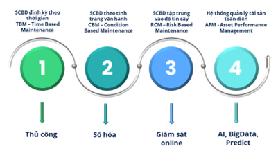Qua quá trình nghiên cứu, học tập các Công ty Điện lực tiên tiến trên thế giới, EVNHCMC nhận thấy: (i) sửa chữa bảo dưỡng là một nhân tố quan trọng trong việc quản lý tài sản; (ii) xu thế hiện nay của các Công ty Điện lực trên thế giới là nâng cấp dần sửa chữa bảo dưỡng từ theo định kỳ theo thời gian (TBM) sang theo tình trạng vận hành (CBM), rồi đến tập trung vào độ tin cậy (RCM), và cao hơn là xây dựng và áp dụng một hệ thống Quản lý tài sản toàn diện (Asset Performance Management System - APMS); (iii) xu hướng chuyển đổi số áp dụng trong sửa chữa bảo dưỡng từ thủ công đến số hóa, giám sát online và áp dụng công nghệ AI, BigData, Predict.